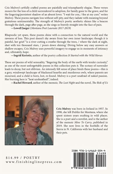 A Chapbook of lyrical poems that speak to the universal human experience of loss. This collection of poems draw on the natural world to find words and images that evoke and express the exquisite and persistent experience of grief, the twin sister of profound love, whether it comes as a result of death, adoption, rejection, suicide, miscarriage, or a myriad of other different kinds of separation.