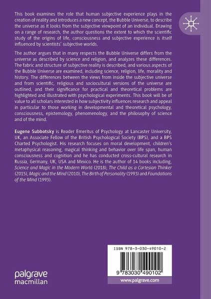 This book examines the role that human subjective experience plays in the creation of reality and introduces a new concept, the Bubble Universe, to describe the universe as it looks from the subjective viewpoint of an individual. Drawing on a range of research, the author questions the extent to which the scientific study of the origins of life, consciousness and subjective experience is itself influenced by scientists' subjective worlds. The author argues that in many respects the Bubble Universe differs from the universe as described by science and religion, and analyzes these differences. The fabric and structure of subjective reality is described, and various aspects of the Bubble Universe are examined, including science, religion, life, morality and history. The differences between the views from inside the subjective universe and from scientific, religious and sociocultural versions of the universe are outlined, and their significance for practical and theoretical problems are highlighted and illustrated with psychological experiments. This book will be of value to all scholars interested in how subjectivity influences research and appeal in particular to those working in developmental and theoretical psychology, consciousness, epistemology, phenomenology, and the philosophy of science and of the mind.