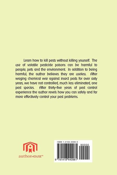 Learn how to kill pests without killing yourself. The use of volatile pesticide poisons can be harmful to people, pets and the environment. In addition to being harmful, the author believes they are useless. After waging chemical war against insect pests for over sixty years, we have not controlled, much less eliminated, one pest species. After thirty-five years of pest control experience the author revels how you can safely and far more effectively control your pest problems.