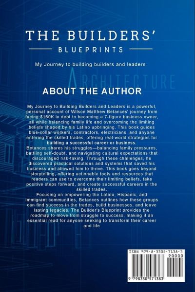 My Journey to Building Builders and Leaders is a powerful, personal account of Wilson Matthew Betances' journey from facing $160K in debt to becoming a 7-figure business owner, all while balancing family life and overcoming the limiting beliefs shaped by his Latino upbringing. This book guides blue-collar workers, contractors, electricians, and anyone entering the skilled trades, offering real-world strategies for building a successful career or business. From Debt to Destiny: A Blueprint for Success in the Skilled Trades Wilson Matthew Betances, a name synonymous with resilience and ambition, shares his extraordinary journey from the depths of financial despair to the heights of entrepreneurial success. This powerful memoir chronicles his relentless pursuit of the American Dream, a pursuit that was often hindered by the weight of cultural expectations and societal limitations. Overcoming Adversity Betances candidly recounts the challenges he faced as a young Latino man, burdened by a staggering $160,000 debt. His story is a testament to the human spirit's ability to overcome adversity. He navigates the complex interplay of family pressures, self-doubt, and the cultural stigma associated with risk-taking. Through unwavering determination and a relentless work ethic, he transforms his life and emerges as a beacon of hope for countless individuals. A Practical Guide to Success Beyond a captivating narrative, My Journey to Building Builders and Leaders offers a comprehensive blueprint for anyone aspiring to achieve success in the skilled trades. Betances shares invaluable insights and practical strategies that have proven effective in both his personal and professional life. Key Takeaways:Conquering Limiting Beliefs: Learn how to overcome self-doubt and embrace a growth mindset. Building a Thriving Business: Discover practical tips for starting and scaling a successful business in the trades. Balancing Family and Career: Find effective strategies for maintaining a fulfilling work-life balance. Navigating Cultural Expectations: Break free from societal norms and pursue your dreams with confidence. Empowering the Latino Community: Explore the unique opportunities and challenges faced by Latino entrepreneurs and workers in the skilled trades. A Legacy of Empowerment Betances' mission extends beyond personal success. He is committed to empowering the Latino, Hispanic, and immigrant communities by providing them with the tools and knowledge they need to achieve their full potential. My Journey to Building Builders and Leaders is a powerful call to action, inspiring readers to embrace their passions, overcome obstacles, and create a legacy of their own. Whether you're a blue-collar worker, a seasoned contractor, or simply someone seeking to improve your life, this book offers the inspiration and guidance you need to succeed. Join Wilson Matthew Betances on his extraordinary journey and unlock your own potential for greatness.