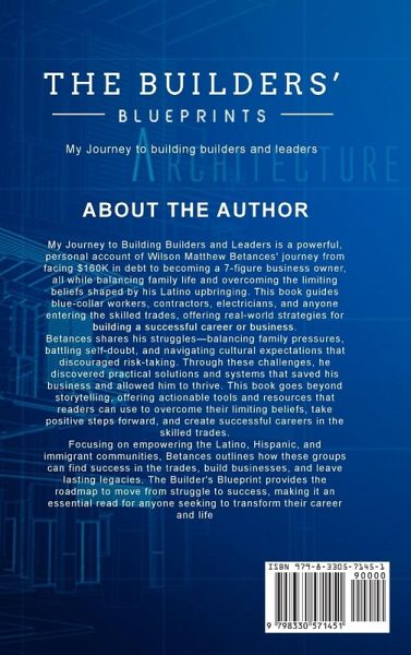My Journey to Building Builders and Leaders is a powerful, personal account of Wilson Matthew Betances' journey from facing $160K in debt to becoming a 7-figure business owner, all while balancing family life and overcoming the limiting beliefs shaped by his Latino upbringing. This book guides blue-collar workers, contractors, electricians, and anyone entering the skilled trades, offering real-world strategies for building a successful career or business. From Debt to Destiny: A Blueprint for Success in the Skilled Trades Wilson Matthew Betances, a name synonymous with resilience and ambition, shares his extraordinary journey from the depths of financial despair to the heights of entrepreneurial success. This powerful memoir chronicles his relentless pursuit of the American Dream, a pursuit that was often hindered by the weight of cultural expectations and societal limitations. Overcoming Adversity Betances candidly recounts the challenges he faced as a young Latino man, burdened by a staggering $160,000 debt. His story is a testament to the human spirit's ability to overcome adversity. He navigates the complex interplay of family pressures, self-doubt, and the cultural stigma associated with risk-taking. Through unwavering determination and a relentless work ethic, he transforms his life and emerges as a beacon of hope for countless individuals. A Practical Guide to Success Beyond a captivating narrative, My Journey to Building Builders and Leaders offers a comprehensive blueprint for anyone aspiring to achieve success in the skilled trades. Betances shares invaluable insights and practical strategies that have proven effective in both his personal and professional life. Key Takeaways:Conquering Limiting Beliefs: Learn how to overcome self-doubt and embrace a growth mindset. Building a Thriving Business: Discover practical tips for starting and scaling a successful business in the trades. Balancing Family and Career: Find effective strategies for maintaining a fulfilling work-life balance. Navigating Cultural Expectations: Break free from societal norms and pursue your dreams with confidence. Empowering the Latino Community: Explore the unique opportunities and challenges faced by Latino entrepreneurs and workers in the skilled trades. A Legacy of Empowerment Betances' mission extends beyond personal success. He is committed to empowering the Latino, Hispanic, and immigrant communities by providing them with the tools and knowledge they need to achieve their full potential. My Journey to Building Builders and Leaders is a powerful call to action, inspiring readers to embrace their passions, overcome obstacles, and create a legacy of their own. Whether you're a blue-collar worker, a seasoned contractor, or simply someone seeking to improve your life, this book offers the inspiration and guidance you need to succeed. Join Wilson Matthew Betances on his extraordinary journey and unlock your own potential for greatness.