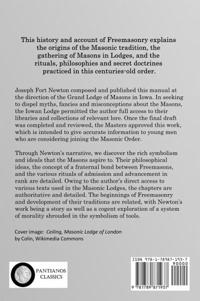 This history and account of Freemasonry explains the origins of the Masonic tradition, the gathering of Masons in Lodges, and the rituals, philosophies and secret doctrines practiced in this centuries-old order. Joseph Fort Newton composed and published this manual at the direction of the Grand Lodge of Masons in Iowa. In seeking to dispel myths, fancies and misconceptions about the Masons, the Iowan Lodge permitted the author full access to their libraries and collections of relevant lore. Once the final draft was completed and reviewed, the Masters approved this work, which is intended to give accurate information to young men who are considering joining the Masonic Order. Through Newton’s narrative, we discover the rich symbolism and ideals that the Masons aspire to. Their philosophical ideas, the concept of a fraternal bond between Freemasons, and the various rituals of admission and advancement in rank are detailed. Owing to the author’s direct access to various texts used in the Masonic Lodges, the chapters are authoritative and detailed. The beginnings of Freemasonry and development of their traditions are related, with Newton’s work being a story as well as a cogent exploration of a system of morality shrouded in the symbolism of tools.