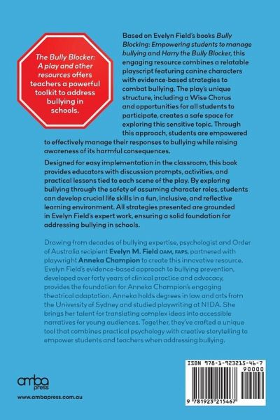 The Bully Blocker: A Play and Other Resources offers teachers a powerful toolkit to address bullying in schools. Based on Evelyn Field's books Bully Blocking: Empowering students to manage bullying and Harry the Bully Blocker, this engaging resource combines a relatable playscript featuring canine characters with evidence-based strategies to combat bullying. The play's unique structure, including a Wise Chorus and opportunities for all students to participate, creates a safe space for exploring this sensitive topic. Through this approach, students are empowered to effectively manage their responses to bullying while raising awareness of its harmful consequences. Designed for easy implementation in the classroom, this book provides educators with discussion prompts, activities, and practical lessons tied to each scene of the play. By exploring bullying through the safety of assuming character roles, students can develop crucial life skills in a fun, inclusive, and reflective learning environment. All strategies presented are grounded in Evelyn Field's expert work, ensuring a solid foundation for addressing bullying in schools.