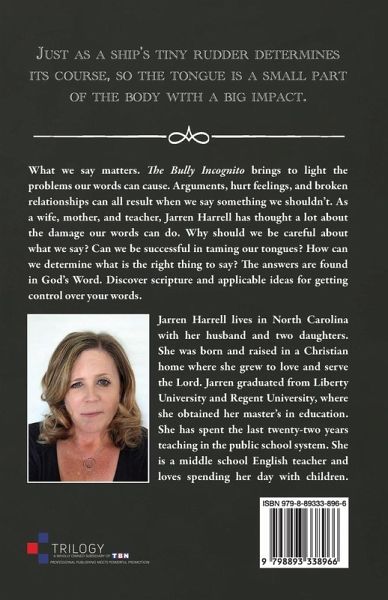 ITS COURSE, SO THE TONGUE IS A SMALL PART OF THE BODY WITH A BIG IMPACT. What we say matters. The Bully Incognito brings to light the problems our words can cause. Arguments, hurt feelings, and broken relationships can all result when we say something we shouldn't. As a wife, mother, and teacher, Jarren Harrell has thought a lot about the damage our words can do. Why should we be careful about what we say? Can we be successful in taming our tongues? How can we determine what is the right thing to say? The answers are found in God's Word. Discover scripture and applicable ideas for getting control over your words.