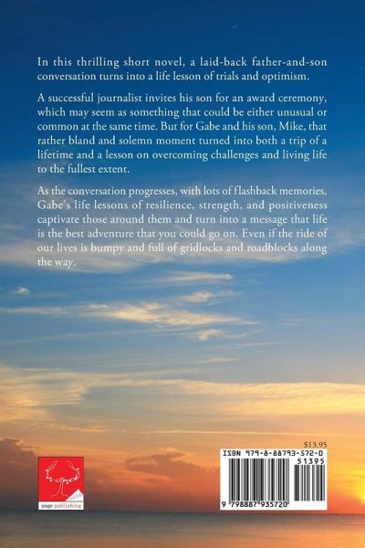 In this thrilling short novel, a laid-back father-and-son conversation turns into a life lesson of trials and optimism. A successful journalist invites his son for an award ceremony, which may seem as something that could be either unusual or common at the same time. But for Gabe and his son, Mike, that rather bland and solemn moment turned into both a trip of a lifetime and a lesson on overcoming challenges and living life to the fullest extent. As the conversation progresses, with lots of flashback memories, Gabe's life lessons of resilience, strength, and positiveness captivate those around them and turn into a message that life is the best adventure that you could go on. Even if the ride of our lives is bumpy and full of gridlocks and roadblocks along the way