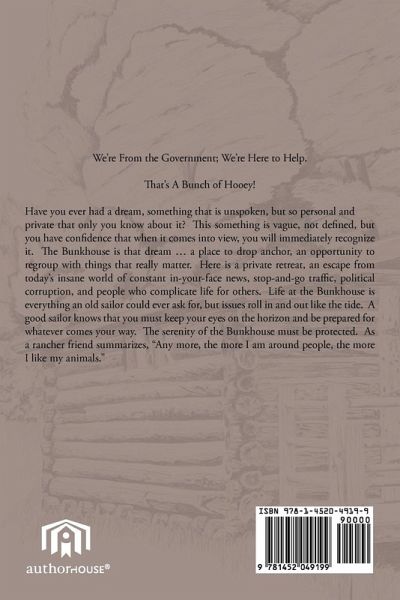 The Bunkhouse at Elkhead Creek is a reminiscence of life in the country. Now, most would surmise that life in an unpopulated area of Colorado, consisting of two residents per square mile, should be uncomplicated; however, when external issues impact one's life, cowboys react. The first rule of the cowboy is to protect that which belongs to the cowboy. So, when an action taken by a government agency thirty years prior threatens his home, the protective hormones surface. After about ten years of cussin' and discussin', this threat is no more resolved when another government-induced threat is laid at his doorstep. This threat results in another two years of cussin' and discussin' before it is resolved. During this period of turmoil, it is suggested that the author take the retirement of a local county commissioner as an opportunity to run for public office. Unfortunately, he makes the wrong decision, and during his period in office, the country goes into a national economic slow down. This downturn eventually impacts the county's expenditures and services are reduced. These cuts are very unpopular with certain segments of the community. As Rudy Giuliani, the former Mayor of New York, once said, "When you confront a problem, you begin to solve it." As the author works through all of these unexpected problems, like a mystery novel, he learns that everything is not as it seems. When he digs into these issues, he discovers many misrepresentations. Warren Buffet, the CEO of Berkshire Hathaway, is quoted, "Only when the tide goes out do you discover who's been swimming naked." Is it possible that Mayor Giuliani and Warren Buffet are cowboys? The serenity of life at the bunkhouse is a cherished but fragile gift...insert the first rule of the cowboy here.