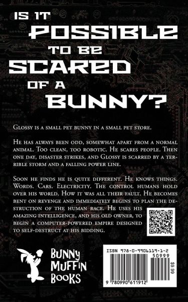 Glossy is a small pet bunny in a small pet store. He has always been odd, somewhat apart from a normal animal. Too clean, too robotic. He scares people. Then one day, disaster strikes, and Glossy is scarred by a terrible storm and a falling power line. Soon he finds is quite different. He knows things. Words. Cars. Electricity. The control humans hold over his world. How it was all their fault. He becomes bent on revenge and immediately begins to plan the destruction of the human race. He uses his amazing intelligence, and his old owner, to begin a computer-powered empire designed to self-destruct at his bidding.
