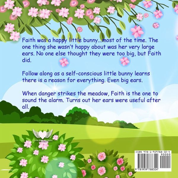 Faith was a happy little bunny...most of the time. The one thing she wasn't happy about was her very large ears. No one else thought they were too big, but Faith did. Follow along as a self-conscious little bunny learns there is a reason for everything. Even big ears. When danger strikes the meadow, Faith is the one to sound the alarm. Turns out her ears were useful after all.