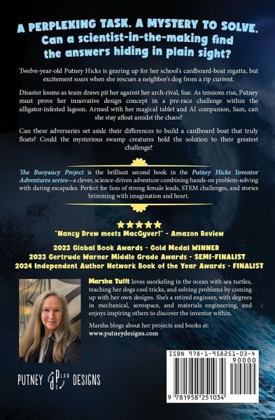 2023 Global Book Awards - Gold Medal WINNER 2023 Gertrude Warner Middle Grade Awards - SEMI-FINALIST 2024 Independent Author Network Book of the Year Awards - FINALIST A thrilling STEM challenge, a baffling mystery, and a young inventor determined to solve it all - science and adventure await in this action-packed sequel! A perplexing task. A mystery to solve. Can a scientist-in-the-making find the answers hiding in plain sight? Twelve-year-old Putney Hicks is gearing up for her school's cardboard-boat regatta, but excitement soars when she rescues a neighbor's dog from a rip current. Disaster looms as team draws pit her against her arch-rival, Sue. As tensions rise, Putney must prove her innovative design concept in a pre-race challenge within an alligator-infested lagoon. Armed with her magical tablet and AI companion, Sam, can she stay afloat amidst the chaos? Can these adversaries set aside their differences to build a cardboard boat that truly floats? Could the mysterious swamp creatures hold the solution to their greatest challenge? The Buoyancy Project is the brilliant second book in the Putney Hicks Inventor Adventures series-a clever, science-driven adventure combining hands-on problem-solving with daring escapades. Perfect for fans of strong female leads, STEM challenges, and stories brimming with imagination and heart. Ready to dive in? Buy The Buoyancy Project now and sail full STEM ahead on Putney's next unforgettable adventure!