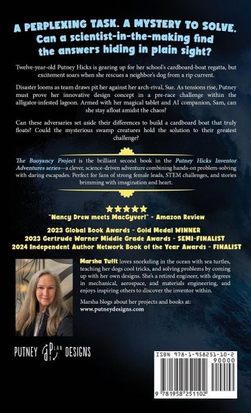 2023 Firebird Book Award - WINNER 2023 Global Book Awards - Gold Medal WINNER 2023 BookFest Book Awards - Silver Medal WINNER 2023 Gertrude Warner Middle Grade Awards - Long List ¿A perplexing task. A mystery to solve. Can a scientist-in-the-making find the answers hiding in plain sight? Putney Hicks is itching to take on her next challenge. Preparing for her school's cardboard-boat regatta, the twelve-year-old inventor hunts down ways to stop the flimsy craft from sinking into a soggy mess. But after she rescues her neighbor's dog from a rip current, the curious girl can't shake the thought that the solution is right in front of her eyes... Joined by her new canine companion and using her magical tablet as she explores an alligator-infested lagoon, Putney is dismayed when she's paired on the project with her arch-nemesis. And as they reluctantly put their heads together, she suddenly realizes that the scaly swamp predators could hold the secret to their experiment's success. Can these stubborn rivals overcome their differences and construct a winning waterproof design? The Buoyancy Project is the ingenious second book in the Putney Hicks Inventor Adventures middle-grade series. If you like scientifically empowered young women, entertaining escapades, and real-life mathematical motivation, then you'll love Marsha Tuft's MacGyver-like enterprise. Buy The Buoyancy Project to sail full STEM ahead today!