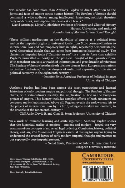 Despite the long history of debate and the recent resurgence of interest in empires and imperialism, no one seems very clear as to what exactly an empire is. The Burdens of Empire strives to offer not only a definition but also a working description. This book examines how empires were conceived by those who ruled them and lived under them; it looks at the relations, real or imagined, between the imperial metropolis (when one existed) and its outlying provinces or colonies; and it asks how the laws that governed the various parts and various ethnic groups, of which all empires were made, were conceived and interpreted. Anthony Pagden argues that the evolution of the modern concept of the relationship between states, and in particular the modern conception of international law, cannot be understood apart from the long history of European empire building.