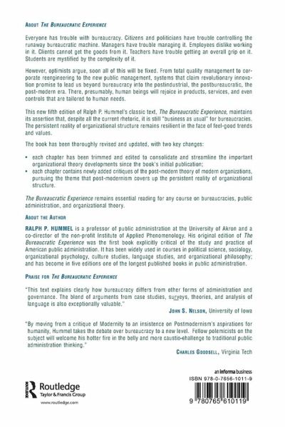 1: Understanding Bureaucracy 2: Bureaucracy as Society: Loss of the Social 3: Bureaucracy as the New Culture: "Economics" 4: The Psychology of Bureaucracy: Organization as Psyche 5: The Language of Bureaucracy: Virtual Words 6: The Thought of Bureaucracy: Failure of Imagination 7: Bureaucracy as Polity: Politics as Administration Epilogue: Bureaucracy, Modernity, and Post-Modernity