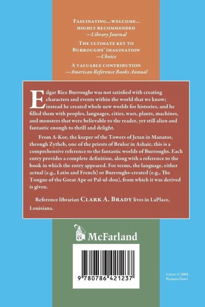 Edgar Rice Burroughs was not satisfied with creating characters and events within the world that we know; instead he created whole new worlds for histories, and he filled them with peoples, languages, cities, wars, plants, machines, and monsters that were believable to the reader, yet still alien and fantastic enough to thrill and delight. From A-Kor, the keeper of the Towers of Jetan in Manator, through Zytheb, one of the priests of Brulor in Ashair, this is a comprehensive reference to the fantastic worlds of Burroughs. Each entry provides a complete definition, along with a reference to the book in which the entry appeared. For terms, the language, either actual (e.g., Latin and French) or Burroughs-created (e.g., The Tongue of the Great Ape or Pal-ul-don), from which it was derived is given.