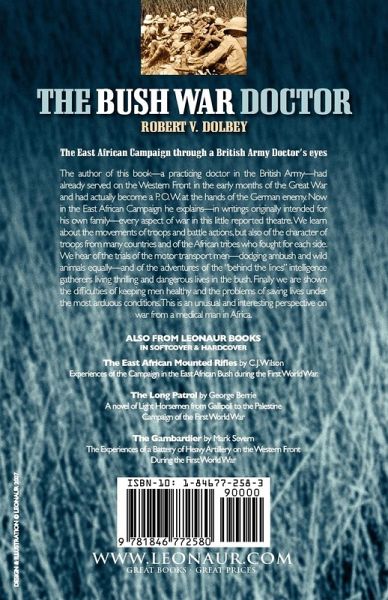 The East African Campaign through a British Army Doctor's eyes The author of this book-a practicing doctor in the British Army-had already served on the Western Front in the early months of the Great War and had actually become a P. O. W. at the hands of the German enemy. Now in the East African Campaign he explains-in writings originally intended for his own family-every aspect of war in this little reported theatre. We learn about the movements of troops and battle actions, but also of the character of troops from many countries and of the African tribes who fought for each side. We hear of the trials of the motor transport men-dodging ambush and wild animals equally-and of the adventures of the "behind the lines" intelligence gatherers living thrilling and dangerous lives in the bush. Finally we are shown the difficulties of keeping men healthy and the problems of saving lives under the most arduous conditions. This is an unusual and interesting perspective on war from a medical man in Africa.