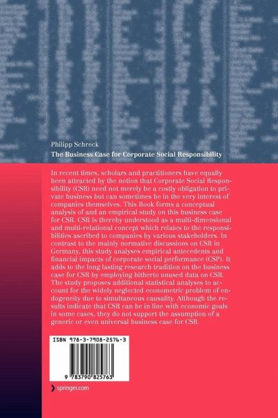 In recent times, scholars and practitioners have equally been attracted by the notion that Corporate Social Responsibility (CSR) need not merely be a costly obligation to private business but can sometimes be in the very interest of companies themselves. This Book forms a conceptual analysis of and an empirical study on this business case for CSR. CSR is thereby understood as a multi-dimensional and multi-relational concept which relates to the responsibilities ascribed to companies by various stakeholders. In contrast to the mainly normative discussions on CSR in Germany, this study analyses empirical antecedents and financial impacts of corporate social performance (CSP). It adds to the long lasting research tradition on the business case for CSR by employing hitherto unused data on CSR. The study proposes additional statistical analyses to account for the widely neglected econometric problem of endogeneity due to simultaneous causality. Although the results indicate that CSR can be in line with economic goals in some cases, they do not support the assumption of a generic or even universal business case for CSR.