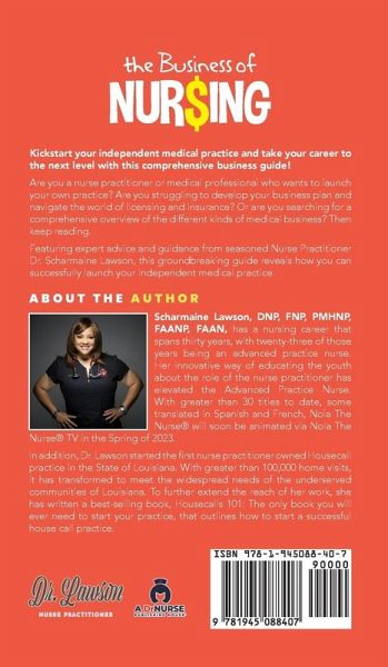 Kickstart your independent medical practice and take your career to the next level with this comprehensive business guide! Are you a nurse practitioner or medical professional who wants to launch your own practice? Are you struggling to develop your business plan and navigate the world of licensing and insurance? Or are you searching for a comprehensive overview of the different kinds of medical business? Then keep reading. Featuring expert advice and guidance from seasoned Nurse Practitioner Dr. Scharmaine Lawson, this groundbreaking guide reveals how you can successfully launch your independent medical practice. Divided into 5 key parts, this accessible and intuitive handbook arms readers with a practical blueprint for business success. Dr. Scharmaine Lawson dispels the mystery around launching a medical practice, so you can develop your core business goal and create a customized plan to suit your area of expertise. Whether you specialize in home calls, chronic and palliative care, support and rehabilitation, health promotion or beyond, The Business of Nur$ing reveals tried-and-tested lessons that will help you navigate the world of independent medical practices, create the perfect identity for your business, and collaborate with like-minded professionals to help you succeed. Here's just a little of what you'll discover inside: · Developing Your Business Plan - How To Find Your Mission and Core Idea · The Most Popular Medical Skills For a Thriving Practice · How To Navigate Licensing, Insurance, Staff Hiring, and The Technical Side of Business · Unlocking The Power of Telemedicine and Adapting To Our Digitized World · Tips & Tricks For Developing a Marketing Plan (Even If You Hate Advertising!) · Your Complete Checklist For Launching Your Medical Practice · And Much More... Ranging from medical spas and weight loss clinics to skincare, HRT therapy, women's health, addiction treatment and more, The Business of Nur$ing provides readers with essential resources that will empower you to kickstart your business and build a successful practice from the ground up. Are you ready to launch your independent medical practice? Then scroll up and grab your copy today!