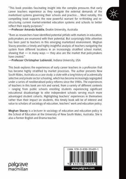 This book explores the experiences of early career teachers in a profession that has become highly stratified by market processes. The author presents New South Wales, Australia as a case study: a state with a long history of academically selective and private sector schooling, which has become increasingly segregated under a series of neoliberalised policy reforms since the 1980s. The experiences of teachers in this book are rich and varied, from a variety of different contexts - ranging from public schools enrolling students experiencing significant educational disadvantage to elite independent schools serving much more advantaged student cohorts. Highlighting teachers' experiences in themselves rather than their impact on students, this timely book will be of interest and value to scholars of sociology of education, teachers' work and education policy.