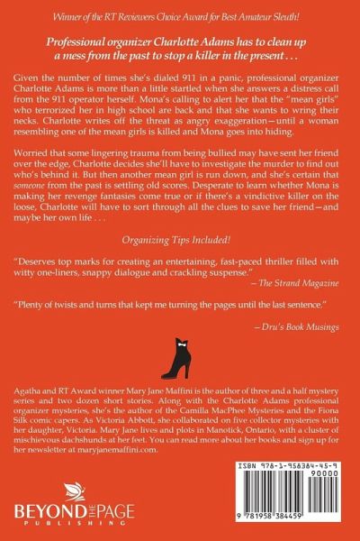 Winner of the RT Reviewers Choice Award for Best Amateur Sleuth! Professional organizer Charlotte Adams has to clean up a mess from the past to stop a killer in the present . . . Given the number of times she's dialed 911 in a panic, professional organizer Charlotte Adams is more than a little startled when she answers a distress call from the 911 operator herself. Mona's calling to alert her that the "mean girls" who terrorized her in high school are back and that she wants to wring their necks. Charlotte writes off the threat as angry exaggeration-until a woman resembling one of the mean girls is killed and Mona goes into hiding. Worried that some lingering trauma from being bullied may have sent her friend over the edge, Charlotte decides she'll have to investigate the murder to find out who's behind it. But then another mean girl is run down, and she's certain that someone from the past is settling old scores. Desperate to learn whether Mona is making her revenge fantasies come true or if there's a vindictive killer on the loose, Charlotte will have to sort through all the clues to save her friend-and maybe her own life . . . Organizing Tips Included! Praise for the Books of Mary Jane Maffini: "A comedic, murderous romp . . . Maffini is a relaxed, accomplished, and wickedly funny writer." -The Montreal Gazette "Mary Jane Maffini provides a first-rate, well-organized whodunit . . . A new series that is fun to read." -Midwest Book Review "Maffini's new series . . . is off to a brilliant start with this fast-paced mystery!" -Romantic Times "Deserves top marks for creating an entertaining, fast-paced thriller filled with witty one-liners, snappy dialogue and crackling suspense." -The Strand Magazine "I'll look forward to a long life for this series." -Deadly Pleasures "Plenty of twists and turns that kept me turning the pages until the last sentence." -Dru's Book Musings