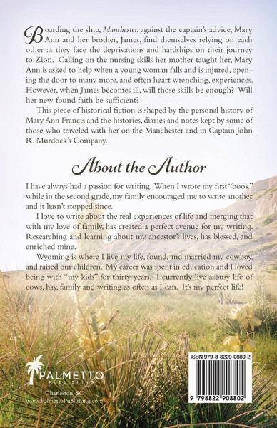 Boarding the ship, Manchester, against the captain's advice, Mary Ann and her brother, James, find themselves relying on each other as they face the deprivations and hardships on their journey to Zion. Calling on the nursing skills her mother taught her, Mary Ann is asked to help when a young woman falls and is injured, opening the door to many more, and often heart wrenching, experiences. However, when James becomes ill, will those skills be enough? Will her new found faith be sufficient? This piece of historical fiction is shaped by the personal history of Mary Ann Francis and the histories, diaries and notes kept by some of those who traveled with her on the Manchester and in Captain John R. Murdock's Company.