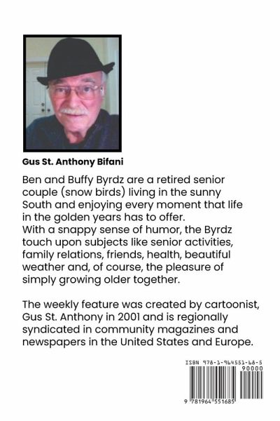 Ben and Buffy Byrd are a retired senior couple (snowbirds) living in the sunny South and enjoying every moment that life in the Golden Years has to offer. With a snappy sense of humor, the Byrds touch upon subjects like senior activities, family relations, friends, beautiful weather and, of course, the pleasure of simply growing older together. The weekly feature was created by cartoonist, Gus St. Anthony, in 2001 and is regionally syndicated in community magazines, and weekly newspapers in the United States and Europe.