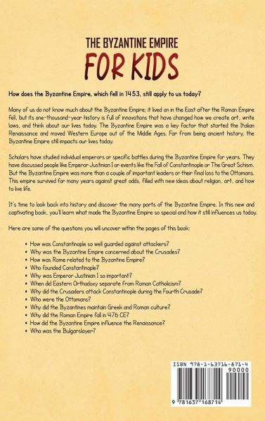 How does the Byzantine Empire, which fell in 1453, still apply to us today? Many of us do not know much about the Byzantine Empire; it lived on in the East after the Roman Empire fell, but its one-thousand-year history is full of innovations that have changed how we create art, write laws, and think about our lives today. The Byzantine Empire was a key factor that started the Italian Renaissance and moved Western Europe out of the Middle Ages. Far from being ancient history, the Byzantine Empire still impacts our lives today. Scholars have studied individual emperors or specific battles during the Byzantine Empire for years. They have discussed people like Emperor Justinian I or events like the Fall of Constantinople or The Great Schism. But the Byzantine Empire was more than a couple of important leaders or their final loss to the Ottomans. This empire survived for many years against great odds, filled with new ideas about religion, art, and how to live life. It's time to look back into history and discover the many parts of the Byzantine Empire. In this new and captivating book, you'll learn what made the Byzantine Empire so special and how it still influences us today. Here are some of the questions you will uncover within the pages of this book: How was Constantinople so well guarded against attackers? Why was the Byzantine Empire concerned about the Crusades? How was Rome related to the Byzantine Empire? Who founded Constantinople? Why was Emperor Justinian I so important? When did Eastern Orthodoxy separate from Roman Catholicism? Why did the Crusaders attack Constantinople during the Fourth Crusade? Who were the Ottomans? Why did the Byzantines maintain Greek and Roman culture? Why did the Roman Empire fall in 476 CE? How did the Byzantine Empire influence the Renaissance? Who was the Bulgarslayer?