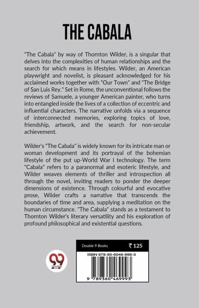 "The Cabala" by way of Thornton Wilder, is a singular that delves into the complexities of human relationships and the search for which means in lifestyles. Wilder, an American playwright and novelist, is pleasant acknowledged for his acclaimed works together with "Our Town" and "The Bridge of San Luis Rey." Set in Rome, the unconventional follows the reviews of Samuele, a younger American painter, who turns into entangled inside the lives of a collection of eccentric and influential characters. The narrative unfolds via a sequence of interconnected memories, exploring topics of love, friendship, artwork, and the search for non-secular achievement. Wilder's "The Cabala" is widely known for its intricate man or woman development and its portrayal of the bohemian lifestyle of the put up-World War I technology. The term "Cabala" refers to a paranormal and esoteric lifestyle, and Wilder weaves elements of thriller and introspection all through the novel, inviting readers to ponder the deeper dimensions of existence. Through colourful and evocative prose, Wilder crafts a narrative that transcends the boundaries of time and area, supplying a meditation on the human circumstance. "The Cabala" stands as a testament to Thornton Wilder's literary versatility and his exploration of profound philosophical and existential questions.