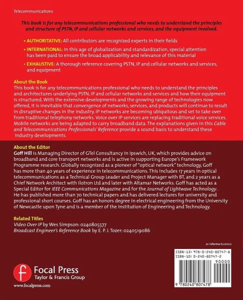 This book is for any telecommunications-convergence professional who needs to understand the structure of the industry, the structure of telephony networks and services, and the equipment involved.With the growing variety of networks and technologies now on offer it is inevitable that some convergence will take place between different networks, services and products. New VOIP (voice over internet protocol) networks must interwork with traditional networks. For instance, mobile phones can offer data services; wireless broadband connections to laptops will allow VOIP phone calls away from base; users could have the option of 'convergent phones' that can be used on a landline when at home or business, but which can be used as a mobile when on the move, and so on.