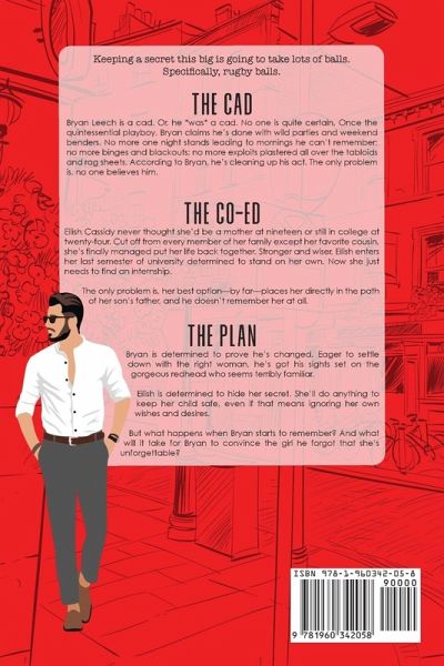 Keeping a secret this big is going to take lots of balls. Specifically, rugby balls. THE CAD Bryan Leech is a cad. Or, he *was* a cad. No one is quite certain. Once the quintessential playboy, Bryan claims he's done with wild parties and weekend benders. No more one night stands leading to mornings he can't remember; no more binges and blackouts; no more exploits plastered all over the tabloids and rag sheets. According to Bryan, he's cleaning up his act. The only problem is, no one believes him. THE CO-ED Eilish Cassidy never thought she'd be a mother at nineteen or still in college at twenty-four. Cut off from every member of her family except her favorite cousin, she's finally managed put her life back together. Stronger and wiser, Eilish enters her last semester of university determined to stand on her own. Now she just needs to find an internship. The only problem is, her best option-by far-places her directly in the path of her son's father, and he doesn't remember her at all. THE PLAN Bryan is determined to prove he's changed. Eager to settle down with the right woman, he's got his sights set on the gorgeous redhead who seems terribly familiar. Eilish is determined to hide her secret. She'll do anything to keep her child safe, even if that means ignoring her own wishes and desires. But what happens when Bryan starts to remember? And what will it take for Bryan to convince the girl he forgot that she's unforgettable?