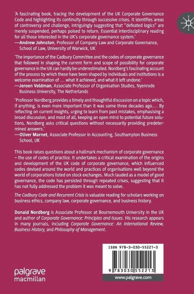 This book raises questions about a hallmark mechanism of corporate governance - the use of codes of practice. It undertakes a critical examination of the origins and development of the UK code of corporate governance, which influenced codes devised around the world and practices of organisations well beyond the world of corporations listed on stock exchanges. Much lauded as a model of good governance, its core principles have persisted for almost 30 years. Yet during that time repeated crises in corporate governance have arisen, suggesting that it has not fully addressed the problem it was meant to solve.