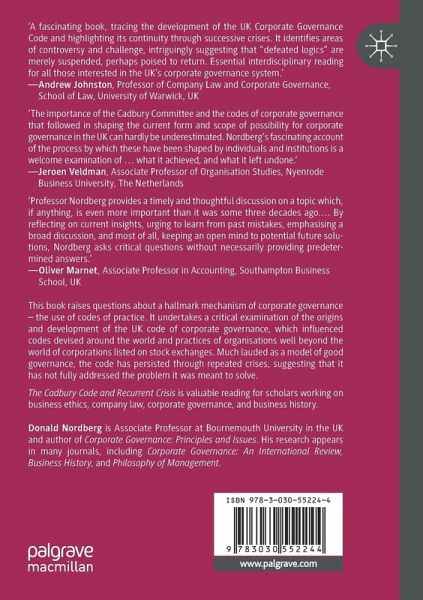 This book raises questions about a hallmark mechanism of corporate governance - the use of codes of practice. It undertakes a critical examination of the origins and development of the UK code of corporate governance, which influenced codes devised around the world and practices of organisations well beyond the world of corporations listed on stock exchanges. Much lauded as a model of good governance, its core principles have persisted for almost 30 years. Yet during that time repeated crises in corporate governance have arisen, suggesting that it has not fully addressed the problem it was meant to solve.