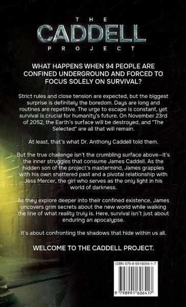 In a world teetering on the edge of extinction, ninety-four people are sealed underground to ensure humanity's survival. But the true battle isn't just against the crumbling surface above, it's within the walls of their new, artificial world. James Caddell, the hidden son of the project's mastermind, struggles with a fractured past and an uncertain future, finding solace only in Jess Mercer, the girl who serves as the only light in his world of darkness. As James navigates their confined existence, he uncovers dark secrets about their world while walking the line of what reality truly is. Here, survival isn't just about enduring an apocalypse-it's about confronting the shadows that hide within us all. Welcome to The Caddell Project.