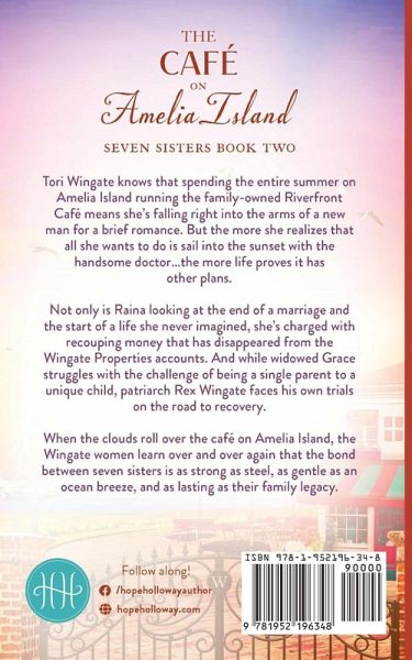 A hearwarming sisters saga full of hope, humor, and heart... Tori Wingate knows that spending the entire summer on Amelia Island running the family-owned Riverfront Café means she's falling right into the arms of a new man for a brief romance. But the more she realizes that all she wants to do is sail into the sunset with the handsome doctor...the more life proves it has other plans. Her sister Raina is not only looking at the end of a marriage and the start of a life she never imagined, she's charged with recouping money that has disappeared from the Wingate Properties accounts. And while widowed Grace struggles with the challenge of being a single parent to a unique child, patriarch Rex Wingate faces his own trials on the road to recovery. When the clouds roll over the café on Amelia Island, the Wingate women learn over and over again that the bond between seven sisters is as strong as steel, as gentle as an ocean breeze, and as lasting as their family legacy. The Seven Sisters Series The Wingate women are unique and unforgettable...but they all share inner strength, abiding love, a few quirky traits, and the ability to support each other through every challenge. This family is founded on love and laughter and a sisterhood unlike any other. When their father suffers a stroke, all seven adult daughters instantly come together to support their mother, run the family business, and lean on each other as they always have. But as they gather at their parents' beach house on Amelia Island, the sisters soon learn that some are struggling in life and love, and picking up the pieces of the businesses along Wingate Way isn't going to be easy. The Seven Sisters series will consist of seven books with recurring characters, continuing stories, heartbreaking and hopeful moments, later-in-life romance, a touch of mystery, and lots of happy tears. All of the books will be available in digital, paperback, and audio formats, launching in Spring, 2023. The Beach House on Amelia Island (book 1) The Café on Amelia Island (book 2) The Bookstore on Amelia Island (book 3) The Florist on Amelia Island (book 4) The Chocolate Shop on Amelia Island (book 5) The Dressmaker on Amelia Island (book 6) The Inn on Amelia Island (book 7)