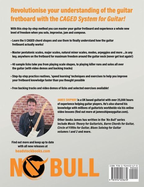 Massively improve your knowledge and understanding of the guitar fretboard and guitar theory with this step-by-step method for using the CAGED system. Armed with everything in this book, you can learn and master the essential guitar scales all over the guitar neck, organize your fretboard for greater understanding and faster progress, use the exercises shown to practice smarter and more efficiently, and become a better guitar player, soloist, improviser and all-round musician. In this method book (with accompanying demonstration videos and backing tracks) you'll discover how to use the CAGED method to unlock your guitar fretboard and overcome the fretboard 'roadblocks' which prevent most guitar players from ever truly mastering the guitar neck. After the CAGED system has been clearly explained, you'll learn how to apply it to the most useful guitar scales all guitar players need to know: the minor pentatonic, major pentatonic, major scale and natural minor scale plus arpeggio shapes for major7, dominant7, minor7 and minor7b5. I'll also reveal how to use what you've learned to master other essential guitar scales like the Dorian mode, Lydian mode, Mixolydian mode, minor6 pentatonic and the blues scale. The CAGED System for Guitar gives you 40 sample guitar licks, with video demonstrations,to help you build your guitar solos and soloing vocabulary. You also get step-by-step practice routines and guitar exercises, as well as 'speed learning' techniques to help you to master your fretboard in a fraction of the time it takes most other guitarists. In The CAGED System for Guitar you'll discover:The five CAGED chord shapes to use for organising and finally understanding your guitar fretboard. Learn how to memorize these quickly and easily using 'speed learning' techniques, circle of fifths exercises, and 'visualization' approaches for a solid fretboard foundation How to 'build' scale shapes and patterns around CAGED chord shapes for unshakeable fretboard knowledge and confidence! Use this method to find a shape for any scale, in any key, anywhere on the fretboard, and play guitar with freedom at last! 40 sample CAGED licks illustrating how to go from playing scale shapes to playing killer licks and solos all over the fretboard. These licks show you the tastiest bends, double-stops and scale runs to help you build your soloing vocabulary and start using each of the CAGED scale shapes like a pro (practice required!) How to build an endless number of great lick and soloing ideas. Use the techniques and practice methods described in the 'Vocab Accelerator' chapter to grow your soloing vocabulary, lick library, and soloing skills Step-by-step practice routines and learn the exact fretboard exercises to use in order to thoroughly and efficiently assimilate everything shown into your guitar playing repertoire Ready to get started?