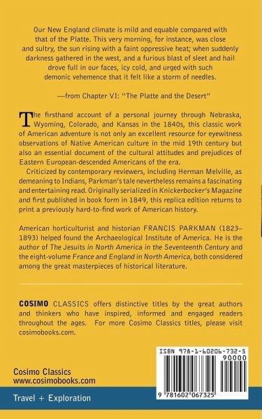 The firsthand account of a personal journey through Nebraska, Wyoming, Colorado, and Kansas in the 1840s, this classic work of American adventure is not only an excellent resource for eyewitness observations of Native American culture in the mid 19th century but also an essential document of the cultural attitudes and prejudices of Eastern European-descended Americans of the era. Criticized by contemporary reviewers, including Herman Melville, as demeaning to Indians, Parkman's tale nevertheless remains a fascinating and entertaining read. Originally serialized in Knickerbocker's Magazine and first published in book form in 1849, this replica edition returns to print a previously hard-to-find work of American history. American horticulturist and historian FRANCIS PARKMAN (1823-1893) helped found the Archaeological Institute of America. He is the author of The Jesuits in North America in the Seventeenth Century and the eight-volume France and England in North America, both considered among the great masterpieces of historical literature.
