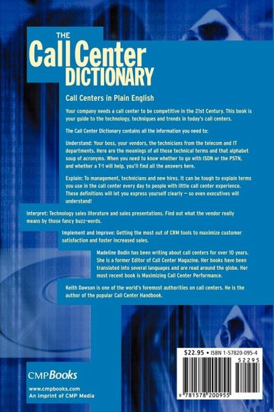 Your company needs a call center to be competitive in the 21st century. This book is your guide to the technology, techniques, and trends in today's call centers. The Call Center Dictionary contains all the information you need to: Understand: Your boss,