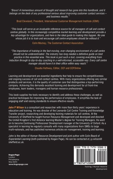 The Call Centre Training Handbook is a complete resource for providing learning, training and development within contact centres. Whether it is induction or periodic training, those who train staff will find it an indispensible resource. It also offers call centre managers and trainers information with which to benchmark training and identifies best practice in learning and development.