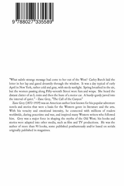 "What subtle strange message had come to her out of the West? Carley Burch laid the letter in her lap and gazed dreamily through the window. It was a day typical of early April in New York, rather cold and gray, with steely sunlight. Spring breathed in the air, but the women passing along Fifty-seventh Street wore furs and wraps. She heard the distant clatter of an L train and then the hum of a motor car. A hurdy-gurdy jarred into the interval of quiet." - Zane Grey, "The Call of the Canyon" Zane Grey (1872-1939) was an American author best known for his popular adventure novels and stories that were a basis for the Western genre in literature and the arts. With his veracity and emotional intensity, he connected with millions of readers worldwide, during peacetime and war, and inspired many Western writers who followed him. Grey was a major force in shaping the myths of the Old West; his books and stories were adapted into other media, such as film and TV productions. He was the author of more than 90 books, some published posthumously and/or based on serials originally published in magazines.