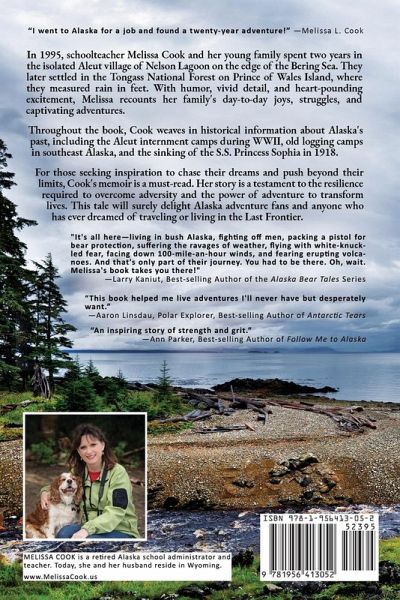 "I went to Alaska for a job and found a twenty-year adventure!"-Melissa L. Cook In 1995, schoolteacher Melissa Cook and her young family spent two years in the isolated Aleut village of Nelson Lagoon on the edge of the Bering Sea. They later settled in the Tongass National Forest on Prince of Wales Island, where they measured rain in feet. With humor, vivid detail, and heart-pounding excitement, Melissa recounts her family's day-to-day joys, struggles, and captivating adventures. Throughout the book, Cook weaves in historical information about Alaska's past, including the Aleut internment camps during WWII, old logging camps in southeast Alaska, and the sinking of the S.S. Princess Sophia in 1918. For those seeking inspiration to chase their dreams and push beyond their limits, Cook's memoir is a must-read. Her story is a testament to the resilience required to overcome adversity and the power of adventure to transform lives. This tale will surely delight Alaska adventure fans and anyone who has ever dreamed of traveling or living in the Last Frontier.