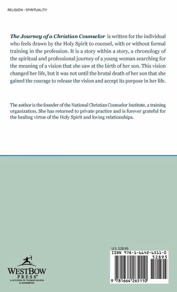 The Journey of a Christian Counselor is written for the individual who feels drawn by the Holy Spirit to counsel, with or without formal training in the profession. It is a story within a story, a chronology of the spiritual and professional journey of a young woman searching for the meaning of a vision that she saw at the birth of her son. This vision changed her life, but it was not until the brutal death of her son that she gained the courage to release the vision and accept its purpose in her life.