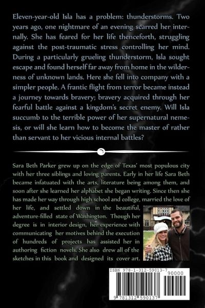 Eleven-year-old Isla has a problem: thunderstorms. Two years ago, one nightmare of an evening scarred her internally. She has feared for her life thenceforth, struggling against the post-traumatic stress controlling her mind. During a particularly grueling thunderstorm, Isla sought escape and found herself far away from home in the wilderness of unknown lands. Here she fell into company with a simpler people. A frantic flight from terror became instead a journey towards bravery; bravery acquired through her fearful battle against a kingdom's secret enemy. Will Isla succumb to the terrible power of her supernatural nemesis, or will she learn how to become the master of rather than servant to her vicious internal battles?