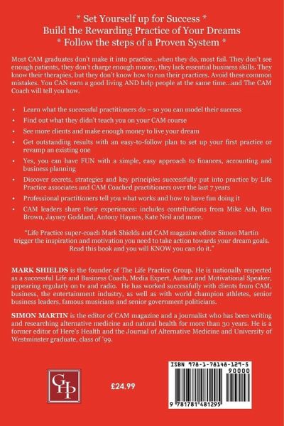 The CAM coach brings together the writing partnership of Mark Shields and Simon Martin. Mark is a Nationally renowned NLP coach and Trainer and Simon a veteran natural health journalist and editor of CAM, the monthly magazine for practitioners of complementary and alternative medicine. Between them they have come up with a host of proven secrets, strategies and evidenced techniques of how to successfully set up and run a Complementary Health Practice. The CAM coach is based upon Mark Shields Coaching for Practitioners Series in CAM magazine which has been proven to help,coach, inspire and motivate many practitioners over the years This together with expert contributions from industry leading experts such as Mike Ash, Jayney Goddard, Anthony Haynes and Kate Neil makes the CAM Coach a unique and valuable resource for anyone looking to work successfully in the Complementary and Alternative Medicine industry