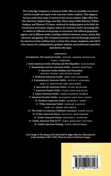 The Cambridge Companion to American Gothic offers an accessible overview to both the breadth and depth of the American Gothic tradition. This subgenre features works from many of America's best-known authors: Edgar Allan Poe, Toni Morrison, Stephen King, Anne Rice, Henry James, Edith Wharton, William Faulkner, and Flannery O'Connor. Authored by leading experts in the field, the introduction and sixteen chapters explore the American Gothic chronologically, in relation to different social groups, in connection with different geographic regions, and in different media, including children's literature, poetry, drama, film, television, and gaming. This Companion provides a rich and thorough analysis of the American Gothic tradition from a twenty-first-century standpoint, and will be a key resource undergraduates, graduate students, and professional researchers interested in this topic.