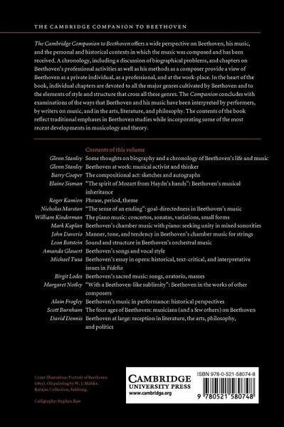 This Companion, first published in 2000, provides a comprehensive view of Beethoven and his work. The first part of the book presents the composer as a private individual, as a professional, and at the work-place, discussing biographical problems, Beethoven's professional activities when not composing and his methods as a composer. In the heart of the book, individual chapters are devoted to all the major genres cultivated by Beethoven and to the elements of style and structure that cross all genres. The book concludes by looking at the ways that Beethoven and his music have been interpreted by performers, writers on music, and in the arts, literature, and philosophy. The essays in this volume, written by leading Beethoven specialists, maintain traditional emphases in Beethoven studies while incorporating other developments in musicology and theory.