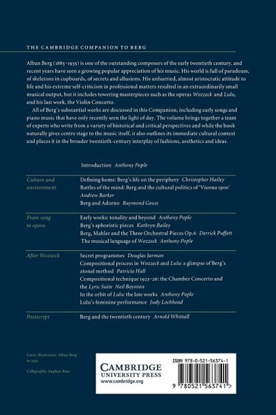 The world of Alban Berg is full of paradoxes, secrets and allusions, but he was able to handle emotional and moral issues at a distance and with profound sympathy. His unhurried, almost aristocratic attitude to life and his extreme self-criticism in professional matters resulted in an extraordinarily small musical output, but it includes towering masterpieces such as the operas Wozzeck and Lulu, and his last work, the Violin Concerto. All of Berg's substantial works are discussed in this Companion which brings together a team of experts who write from a variety of historical and critical perspectives, outlining the place of the music in the cultural history of its time and recontextualising it against the broader twentieth-century interplay of fashions, aesthetics and ideas.