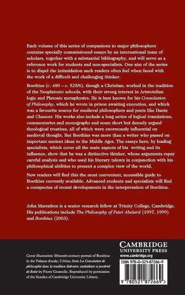 Boethius (c.480-c.525/6), though a Christian, worked in the tradition of the Neoplatonic schools, with their strong interest in Aristotelian logic and Platonic metaphysics. He is best known for his Consolation of Philosophy, which he wrote in prison awaiting execution. His works also include a long series of logical translations, commentaries and monographs and some short but densely-argued theological treatises, all of which were enormously influential on medieval thought. But Boethius was more than a writer who passed on important ancient ideas to the Middle Ages. The essays here by leading specialists, which cover all the main aspects of his writing and its influence, show that he was a distinctive thinker, whose arguments repay careful analysis and who used his literary talents in conjunction with his philosophical abilities to present a complex view of the world.
