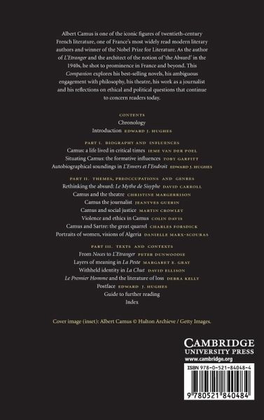 Albert Camus is one of the iconic figures of twentieth-century French literature, one of France's most widely read modern literary authors and one of the youngest winners of the Nobel Prize for Literature. As the author of L'Etranger and the architect of the notion of 'the Absurd' in the 1940s, he shot to prominence in France and beyond. His work nevertheless attracted hostility as well as acclaim and he was increasingly drawn into bitter political controversies, especially the issue of France's place and role in the country of his birth, Algeria. Most recently, postcolonial studies have identified in his writings a set of preoccupations ripe for revisitation. Situating Camus in his cultural and historical context, this Companion explores his best-selling novels, his ambiguous engagement with philosophy, his theatre, his increasingly high-profile work as a journalist and his reflection on ethical and political questions that continue to concern readers today.