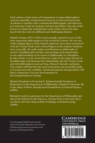 Rudolf Carnap (1891–1970) is increasingly regarded as one of the most important philosophers of the twentieth century. He was one of the leading figures of the logical empiricist movement associated with the Vienna Circle and a central figure in the analytic tradition more generally. He made major contributions to philosophy of science and philosophy of logic, and, perhaps most importantly, to our understanding of the nature of philosophy as a discipline. In this volume a team of contributors explores the major themes of his philosophy and discusses his relationship with the Vienna Circle and with philosophers such as Frege, Husserl, Russell, and Quine. New readers will find this the most convenient and accessible guide to Carnap currently available. Advanced students and specialists will find a conspectus of recent developments in the interpretation of Carnap.