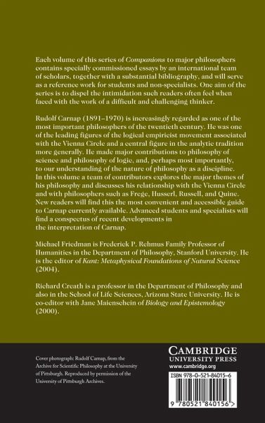 Rudolf Carnap (1891-1970) is increasingly regarded as one of the most important philosophers of the twentieth century. He was one of the leading figures of the logical empiricist movement associated with the Vienna Circle and a central figure in the analytic tradition more generally. He made major contributions to philosophy of science and philosophy of logic, and, perhaps most importantly, to our understanding of the nature of philosophy as a discipline. In this volume a team of contributors explores the major themes of his philosophy and discusses his relationship with the Vienna Circle and with philosophers such as Frege, Husserl, Russell, and Quine. New readers will find this the most convenient and accessible guide to Carnap currently available. Advanced students and specialists will find a conspectus of recent developments in the interpretation of Carnap.
