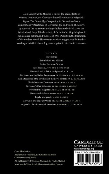 Don Quixote de la Mancha (1605) is one of the classic texts of Western literature and the foundation of European fiction. Yet Cervantes himself remains an enigmatic figure. The Cambridge Companion to Cervantes, first published in 2002, offers a comprehensive treatment of Cervantes' life and work, including his lesser known writing. The essays, by some of the most outstanding scholars in the field, cover the historical and political context of Cervantes' writing, his place in Renaissance culture, and the role of his masterpiece, Don Quixote, in the formation of the modern novel. They draw on contemporary critical perspectives to shed new light on Cervantes' work, including the 'Exemplary Novels', the plays and dramatic interludes, and the long romances, Galatea and Persiles. The volume provides useful supporting material for students; suggestions for further reading, a detailed chronology, a complete list of his published writings, an overview of translations and editions, and a guide to electronic resources.