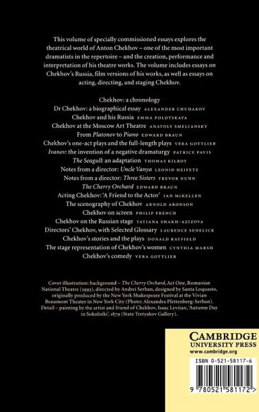 List of illustrations; Acknowledgements; Notes on contributors; Chekhov: a chronology Paul Allain; Editorial notes: transliteration and titles, calendar dates; Part I. Chekhov in Context: 1. Dr Chekhov: a biographical essay Alexander Chudakov; 2. Chekhov and his Russia Emma Polotskaya; 3. Chekhov and the Moscow Art Theatre Anatoly Smeliansky; Part II. Chekhov in Production: 4. From Platonov to Piano Edward Braun; 5. Chekhov's one-act plays and the full-length plays Vera Gottlieb; 6. Ivanov: the invention of a negative dramaturgy Patrice Pavis; 7. The Seagull: an adaptation Thomas Kilroy; 8. Notes from a director: Leonid Heifetz on Uncle Vanya Leonid Heifetz; 9. Notes from a director: Trevor Nunn on Three Sisters Trevor Nunn; 10. The Cherry Orchard Edward Braun; 11. Acting Chekhov: 'A Friend to the Actor' Ian McKellen; 12. The scenography of Chekhov Arnold Aronson; 13. Chekhov on screen Philip French; 14. Chekhov on the Russian stage Tatiana Shakh-Azizova; 15. Directors' Chekhov Laurence Senelick; Selected glossary Laurence Senelick; Part III. Chekhov the Writer: 16. Chekhov's stories and the plays Donald Rayfield; 17. The stage representation of Chekhov's women Cynthia Marsh; 18. Chekhov's comedy Vera Gottlieb; Appendix A: Chekhov's works: primary sources from the Russian: variations of English titles; Appendix B: Select stage productions; Appendix C: Select screen versions; Select bibliography; Index.